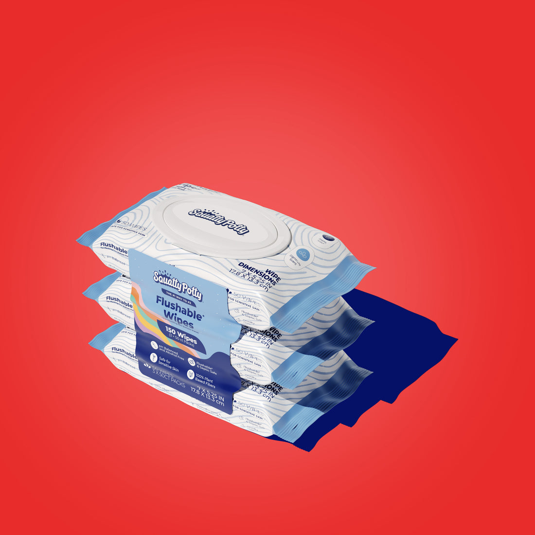 When it comes to personal hygiene, wipes have become an everyday essential — whether you’re cleaning up a baby, freshening your face, or using them in the bathroom. But not all wipes are created equal. Although they might look similar, baby wipes, facial wipes, and flushable toilet wipes differ in both composition and intended use — and those differences matter a lot, especially when it comes to what should (and shouldn’t) go down your toilet. Baby Wipes: Gentle for Skin, Designed for Messes Material: Baby wipes are made from a soft, durable, nonwoven fabric, often a blend of polyester and polypropylene fibers. These synthetic materials make them strong enough to handle tough cleanup jobs and resist tearing, even when wet. However, these same qualities also mean they don’t break down easily in water. And while more and more brands are moving to a 100% plant based material for baby wipes now, they are still designed to resist tearing and breakdown, meaning even though they are plant based they are still not flushable. Use: Formulated for sensitive skin, baby wipes are designed with moisturizing and soothing ingredients like aloe, chamomile, or mild cleansers. They’re perfect for diaper changes and gentle cleaning, but their durability means they’re not meant to be flushed. Even one or two wipes can cause clogs or contribute to larger blockages in plumbing and sewer systems, known as “fatbergs.” Facial Wipes: Designed for Beauty, Not the Bathroom Material: Facial wipes share a similar construction to baby wipes, they’re typically made of nonwoven synthetic fibers or blends that give them a smooth, cloth-like texture. This makes them ideal for wiping away makeup, oil, and dirt without disintegrating. In other words, they are designed to feel soft while still being relatively difficult to tear. And just like baby wipes, more companies are moving over to plant based fibers for their facial wipes, even going so far as to claim that they are biodegradable and/or compostable - but again it’s important to note that these fibers are not constructed to disintegrate quickly in water, meaning they are also not designed to be flushed. Use: Since facial wipes are formulated with ingredients like micellar water, exfoliants, or skin conditioners, they’re a convenient alternative to washing your face. But despite their softness, they are not flushable either. These specific fibers don’t disperse or degrade in water, and they can easily cause blockages in household pipes or municipal systems. Flushable Toilet Wipes: Built to Clean, and then Break Down Material: The major difference with flushable toilet wipes lies in the fiber technology. True flushable wipes are made from plant-based materials, such as cellulose, wood pulp, cotton, or regenerated fibers like viscose or lyocell. Unlike synthetic polymers, these natural fibers are hydrophilic, meaning they absorb water and begin to lose strength almost immediately after flushing. This is often why they feel thinner than baby wipes or facial wipes - it’s an intentional design that combines functional structure for an effective clean while dispersing quickly in water to prevent clogs in sewers and septic systems. Most flushable wipes use hydroentangling (spunlace) technology, which bonds the fibers together with high-pressure water jets instead of chemical binders. This gives the wipe a soft, strong texture when dry and in use — but allows it to break apart once it’s agitated in water, mimicking the dispersibility of toilet paper. Use: Obviously, flushable wipes are designed for use after going to the bathroom and offer a fresher, cleaner feel as compared to toilet paper, and usually contains ingredients designed to help care for skin and reduce irritation in those sensitive areas. However, not all products labeled “flushable” meet rigorous disintegration standards. There are testing protocols designed to validate flushability, which are subject to change to meet shifting federal and local regulations for sewage and water systems. That’s why it’s best to look for wipes certified by industry standards like INDA/IWSFG Flushability Guidelines. Squatty Potty Flushable Wipes - The Right Wipe for the Right Time Squatty Potty Flushable wipes have undergone independent lab testing to confirm that they meet INDA GD4 Flushable Product Guidelines, so you can trust that they are flushable and septic safe when you flush according to disposal instructions. But, they aren’t just the perfect option for your post-potty cleanup, they’re also: Hypoallergenic & Dermatologically Tested Made with 100% plant based fibers Formulated with 99% water and plant based ingredients pH balanced & alcohol free FSC certified Infused with chamomile, green tea, aloe, cucumber, & vitamin e Formulated without harsh chemicals, oils, parabens, or sulfates Cruelty Free On top of all that, these wipes are tested and proven safe for sensitive and eczema-prone skin, making them gentle enough for the whole family. They’re perfect for removing dirt, sweat, and everyday grime, and they double as a refreshing pick-me-up after a workout or a long day. The only thing they’re not designed for is makeup removal or use directly on eyes - their formula and material are optimized to break down easily in water and remain safe for sewer and septic systems. But aside from that, they’re an excellent go-to for nearly all your daily wipe needs - with the added bonus of being flushable!